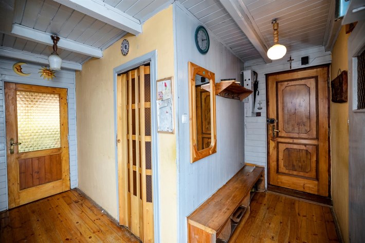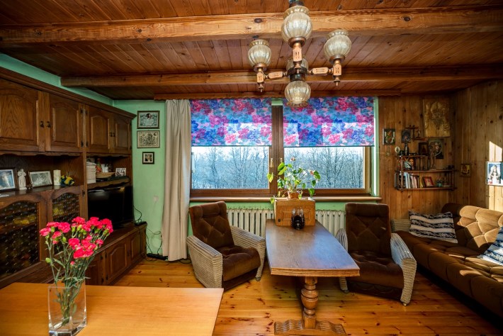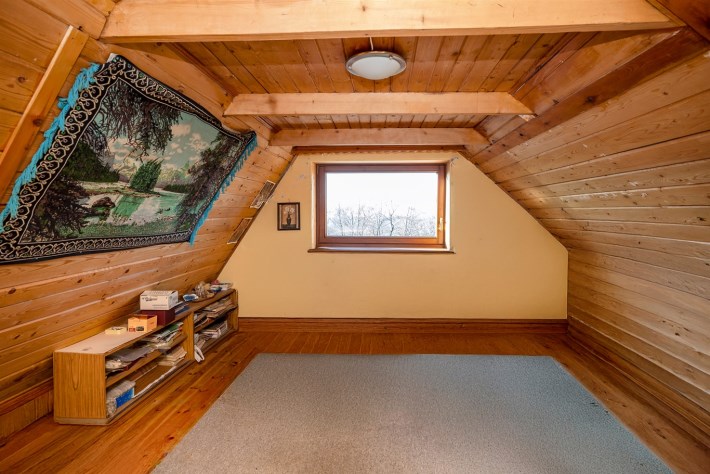 Przyziemie jest murowane. Ściany murowano drewniane ocieplone styropianem.