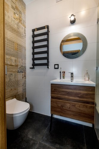 - ogrzewanie podłogowe w całym domu (każde pomieszczenie sterowane osobno)