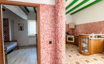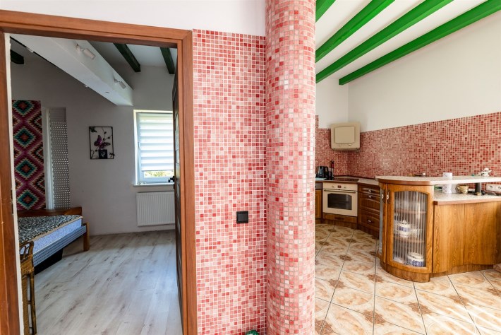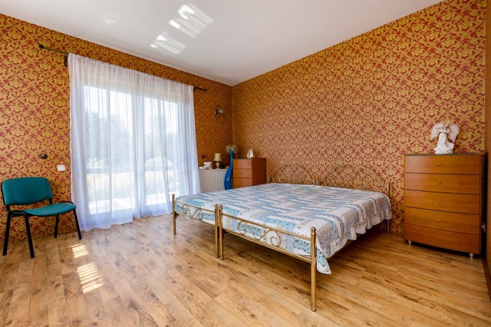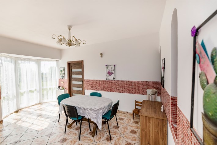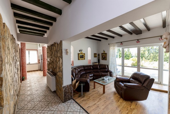 Wnętrza zaaranżowane w indywidualnym stylu. Okna PCV dwuszybowe. Na podłogach panele i płytki, a na ścianach ozdobny kamień. Wnętrza wymagają częściowo wykończenia i odświeżenia.