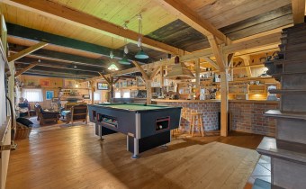 Ogromny i przestronny salon ze stołem bilardowym i wyjściem na przeszklony ogród zimowy, aktualnie zamieszkany przez dwa szczęśliwe koty,
