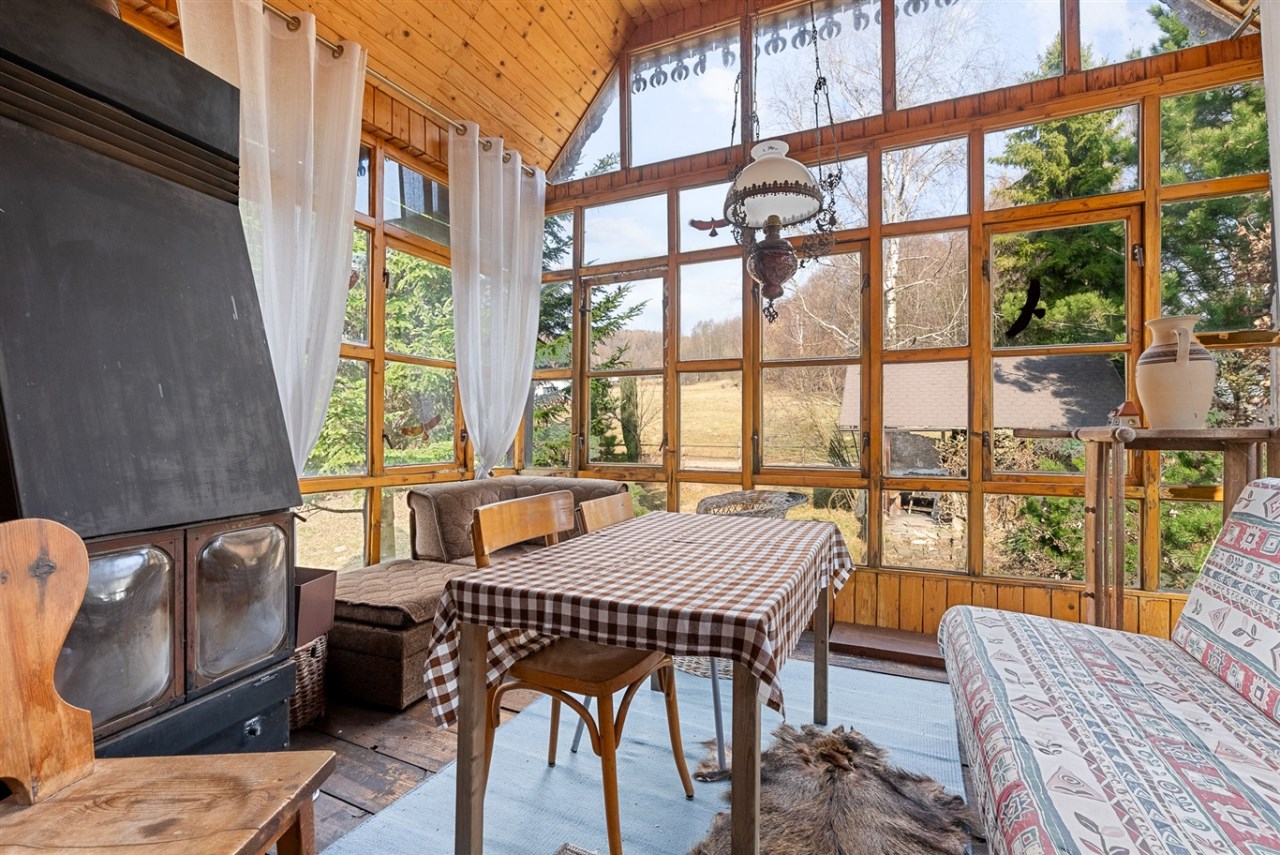 Klimat wnętrz oddaje charakter góralskiej, wiejskiej chaty. Drewniane podłogi, schody, okna i drzwi. Planowana jest wymiana okien i drzwi w najbliższych miesiącach, wszystko z poszanowaniem aktualnego stylu wykończenia.