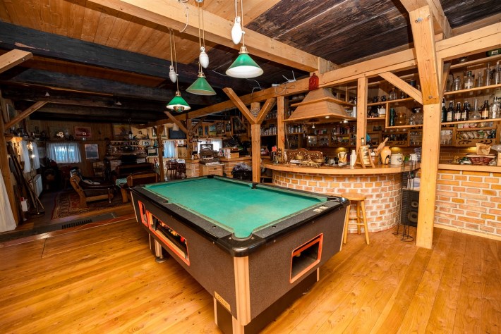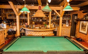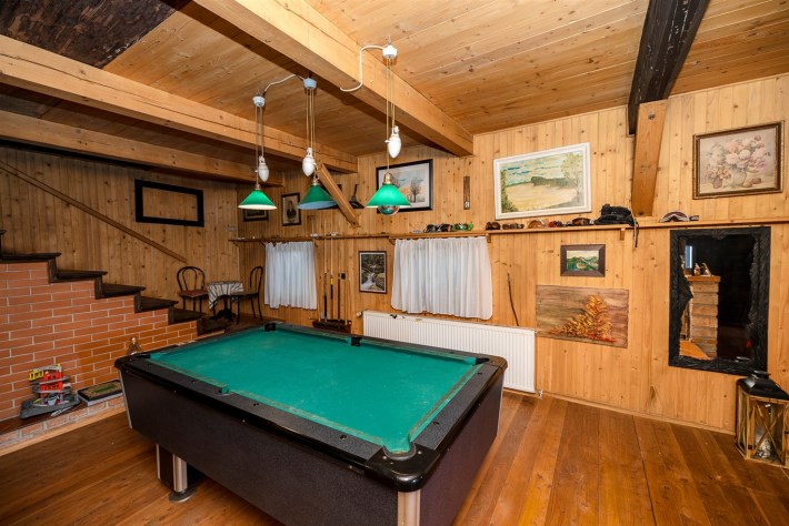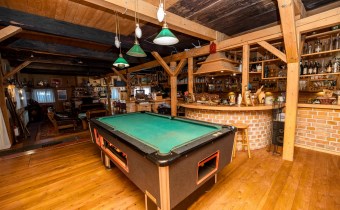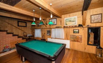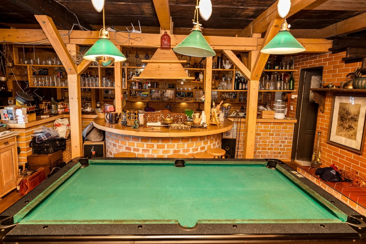 Ogromny i przestronny salon ze stołem bilardowym i wyjściem na przeszklony ogród zimowy, aktualnie zamieszkany przez dwa szczęśliwe koty,