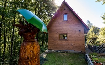 Działka jest urokliwie zagospodarowana. Na działce znajduje się urokliwa rzeźba drewniana unikatowa, stworzona przez kolalnego tworcę.