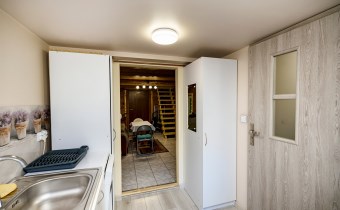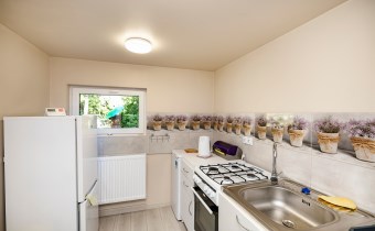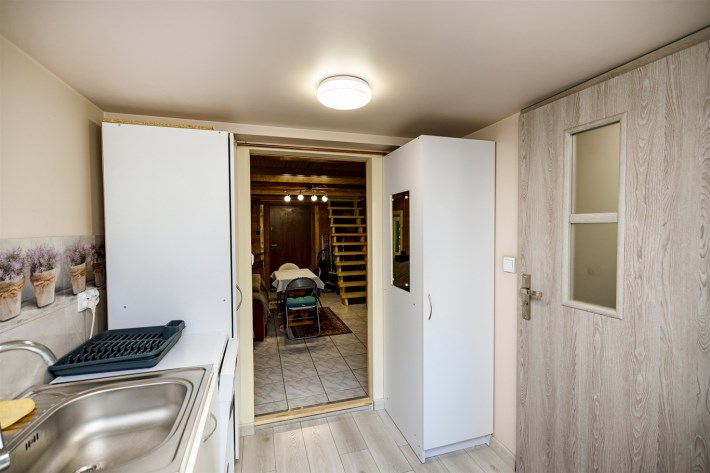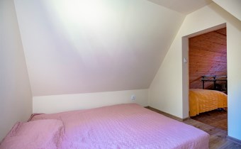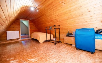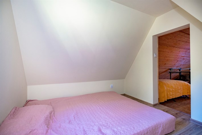Na parterze jest salon, kuchnia, łazienka z WC. Na poddaszu dwa pokoje.