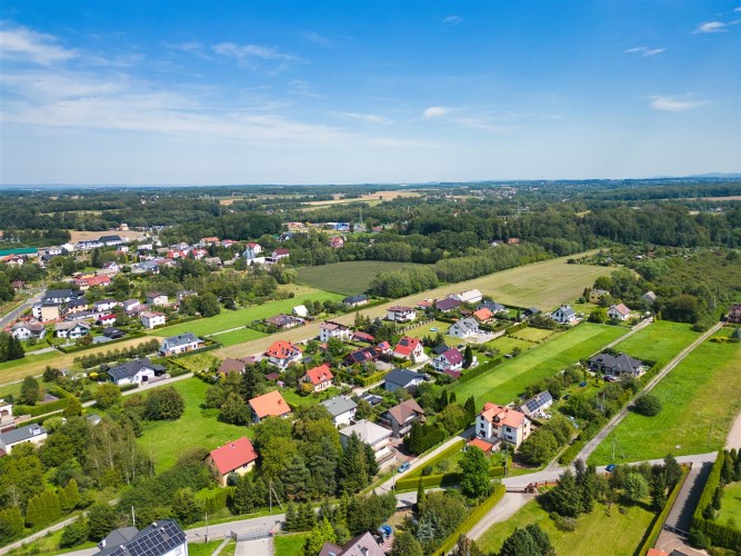 Budynek będzie położony na działce około 10 arów, która zostanie wydzielona z wiekszego areału. Istnieje mozliwość zakupienia z wiekszym areałem.