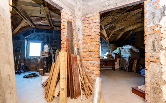 Budynek wybudowany około 15 lat temu budowany, murowany z pustaka, cegły, nieocieplony i nieotynkowany. Dach kryty dachówką.