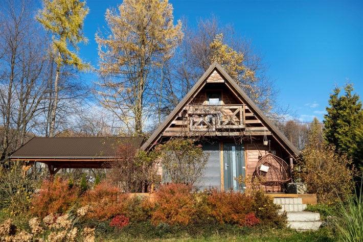 Uroczy dom letniskowy o powierzchni 55mkw położony jest na południowym stoku w Międzybrodziu Bialskim, w Żarnówce.