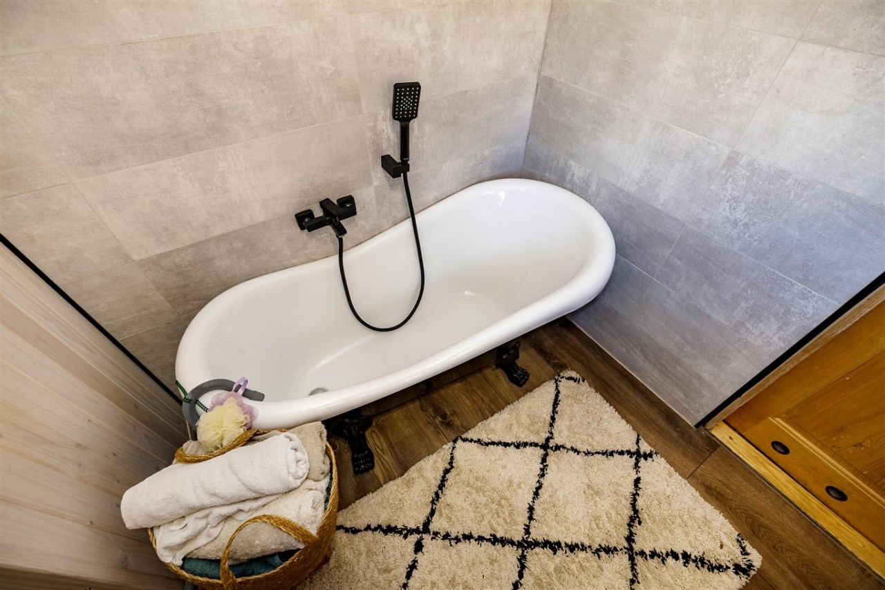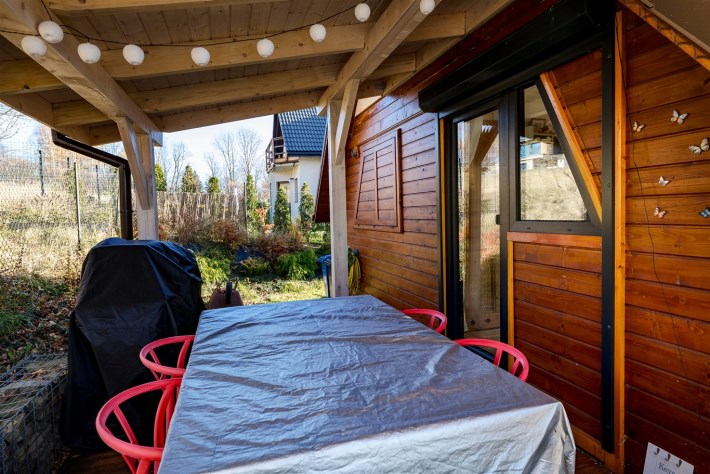 Parter o powierzchni 31mkw: kuchnia, łazienka (z wanną!), salon z wyjściem na widokowy taras, przedpokój, zadaszony drugi taras.