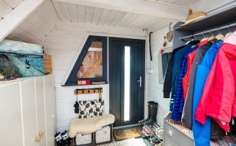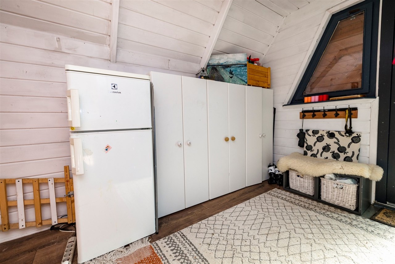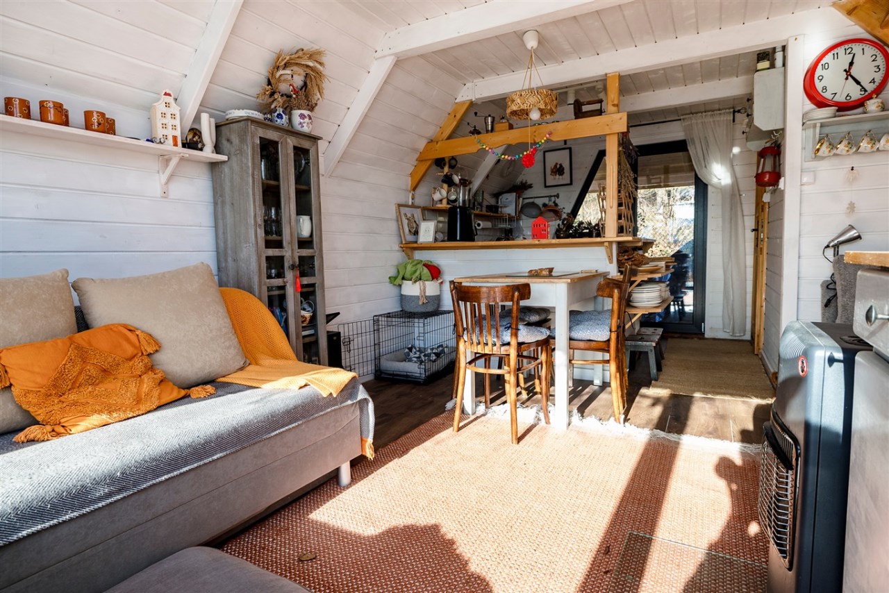 Budynek stoi na działce około 6 arów, ogrodzonej z bramą wjazdową. Na działce znajduje się dodatkowo drewniana wiata na samochód (z 2020 roku) oraz mała szopka narzędziowa na sprzęt ogrodniczy.