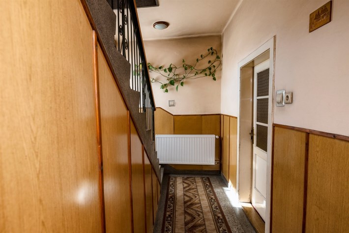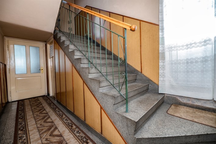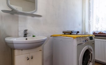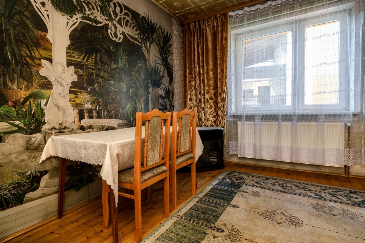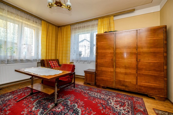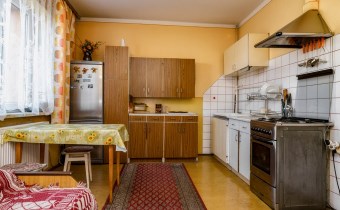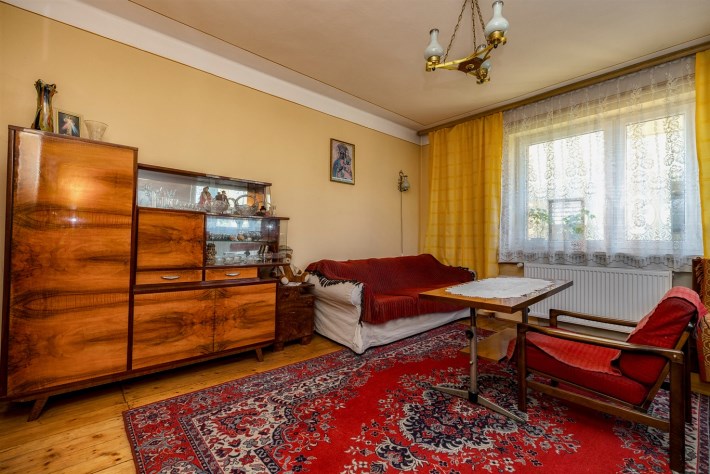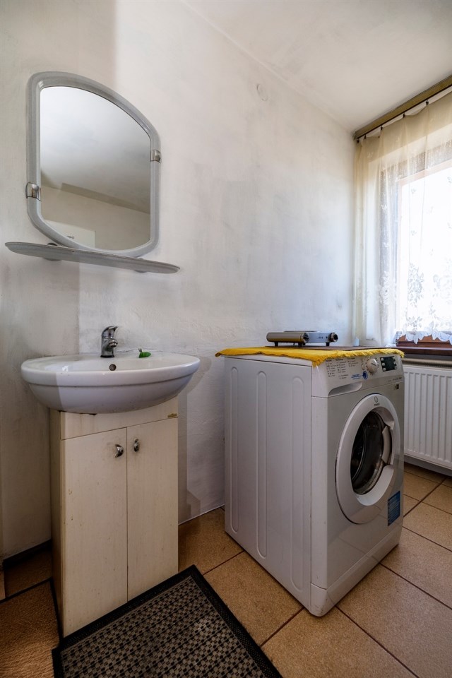 Na parterze są dwa niezależne mieszkania o zbliżonym rozkładzie pomieszczeń: dwa pokoje, kuchnia, łazienka i WC ( na piętrze pomieszczenie nie zostało wykończone), spiżarnia, przedpokój.