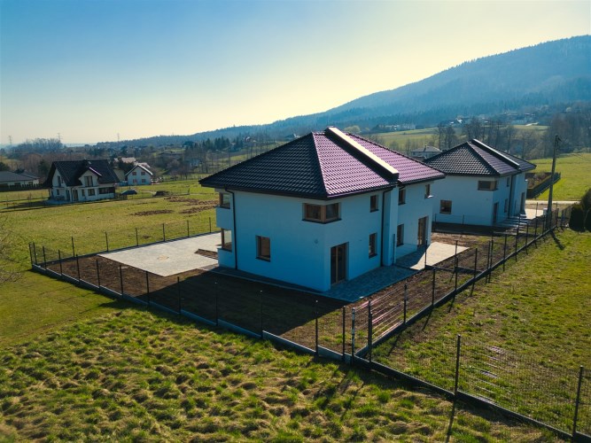 Nowoczesny dom o powierzchni około 130mkw wybudowany w zabudowie bliźniaczej w stanie deweloperskim blisko gór położony w malowniczej miejscowości Kozy, przy spokojnej ulicy Wilgi.