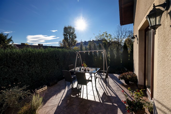 Budynek położony na działce 511mkw, ogrodzonej z bramą wjazdową.
