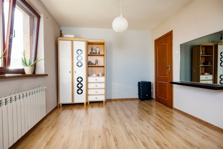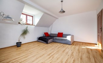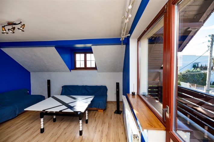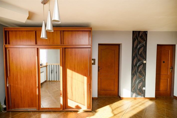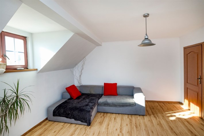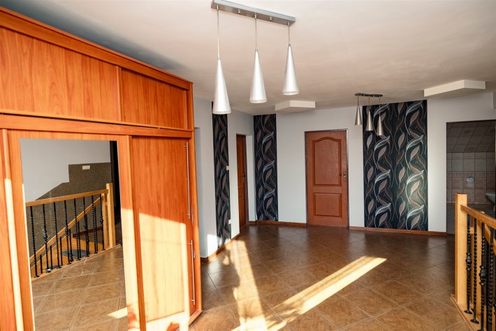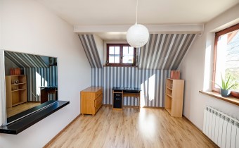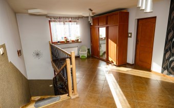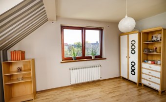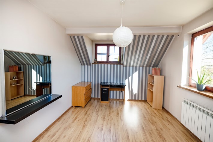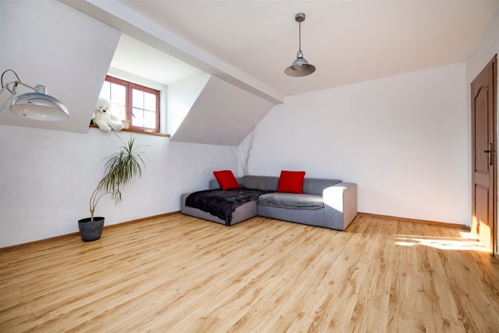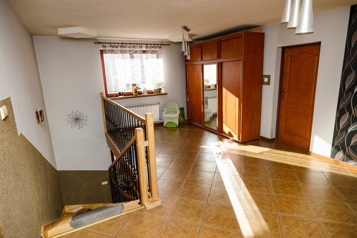 Na piętrze jest pięć pokoi, łazienka i holl.
