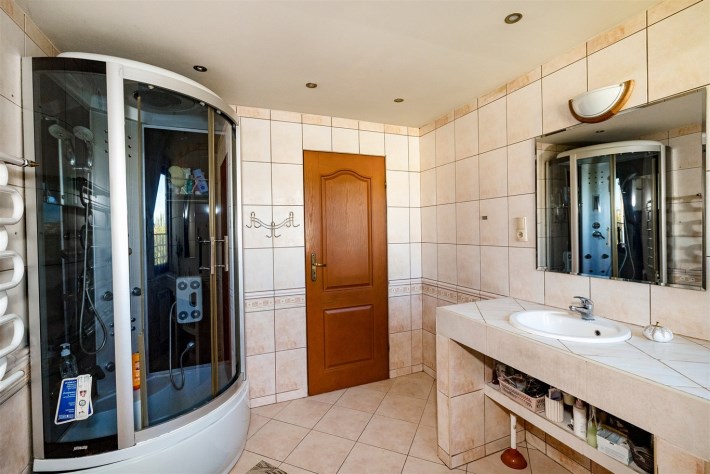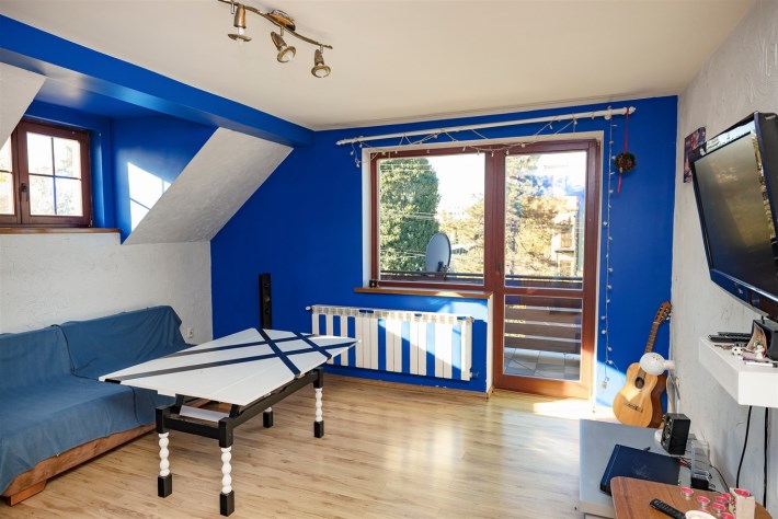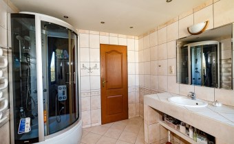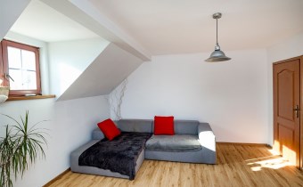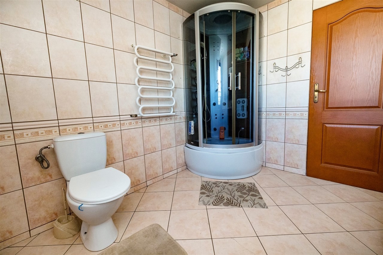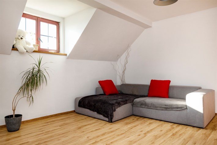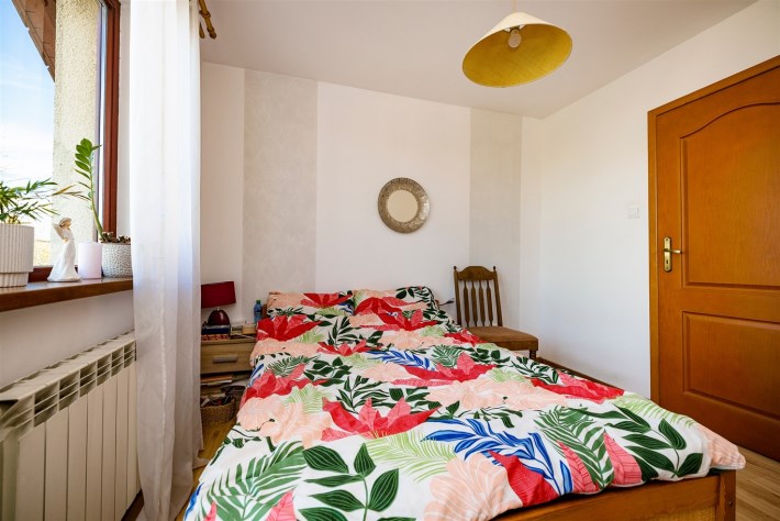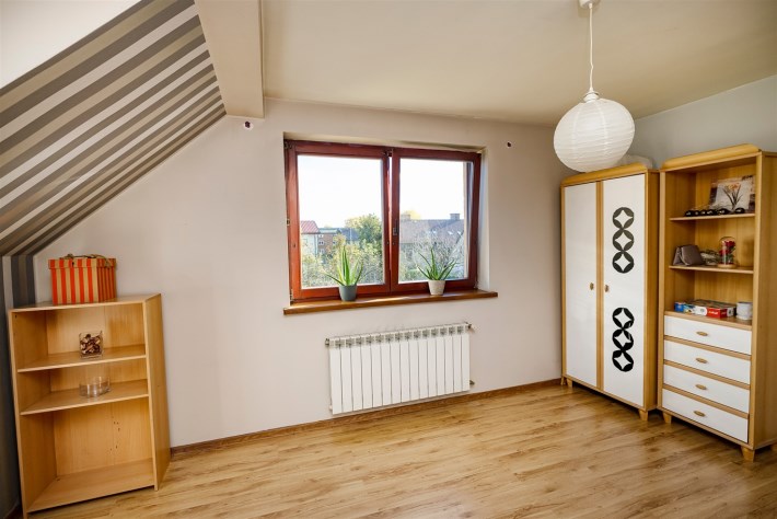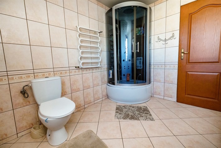 Na piętrze jest pięć pokoi, łazienka i holl.
