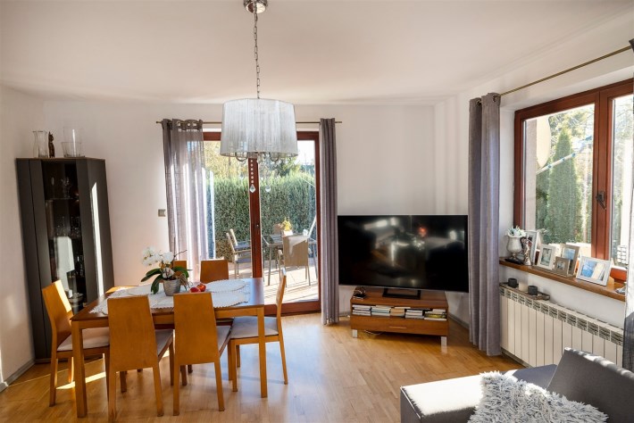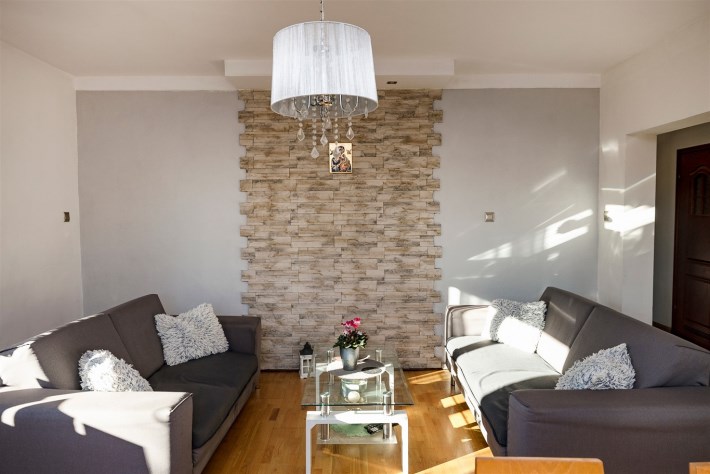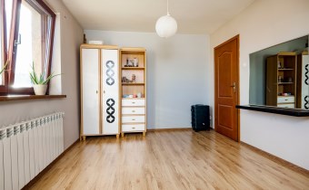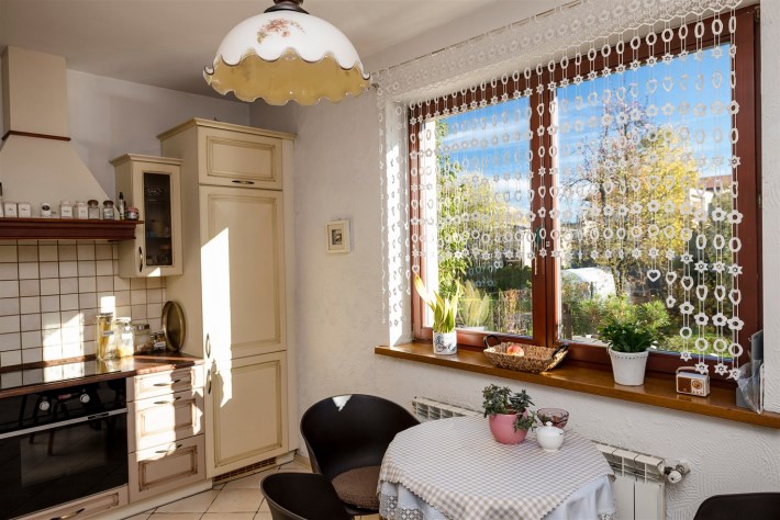 Wnętrza bardzo schludne i zadbane. Okna drewniane. Na podłogach deska barlinecka, panele i płytki.