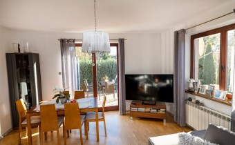 Na parterze jest pomieszczenie usługowe ( zakład krawiecki- około 40mkw), WC, holl, WC, pralnia, kuchnia, pokój dzienny z wyjściem na taras.