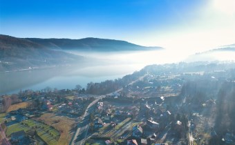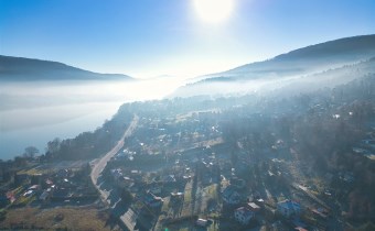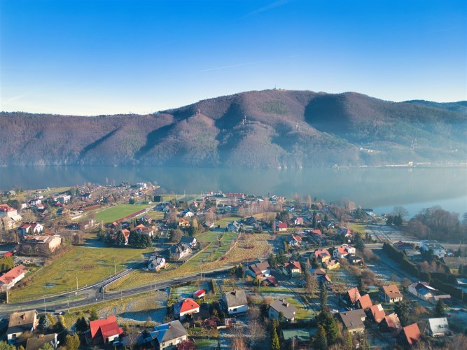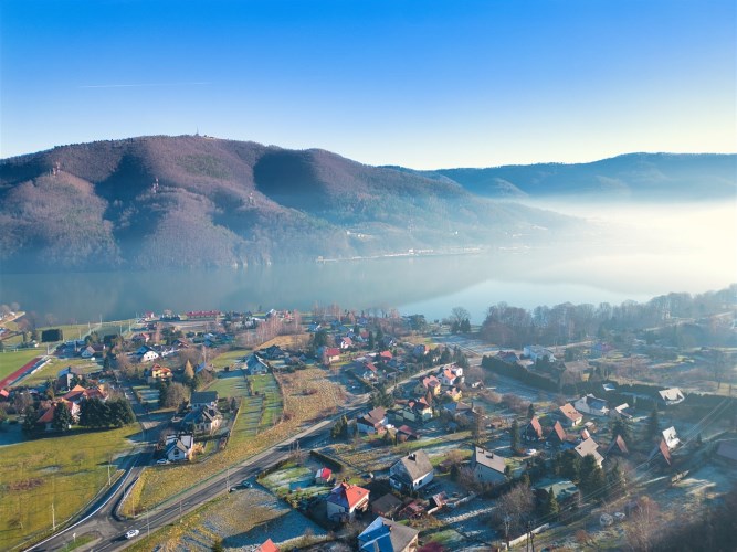 Niedaleko wejście na szlak na MAgurkę. WIdok na Góę Żar oraz jezioro.