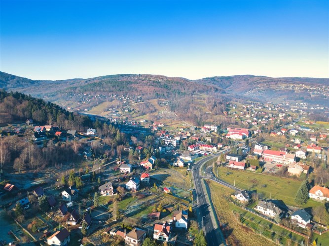 Świetna działka o powierzchni 1011mkw położona jest niemal w samym centrum miejscowości tuż przy ulicy Żywieckiej.