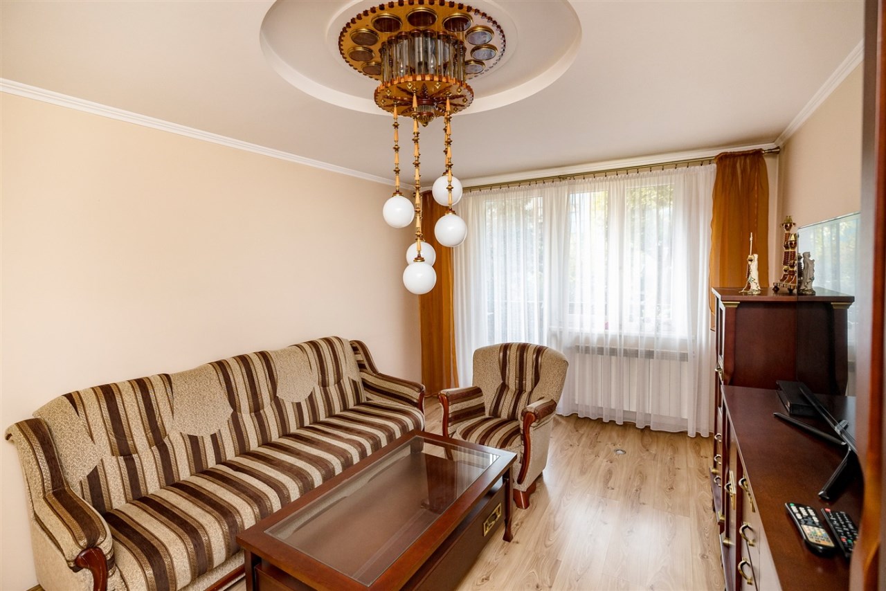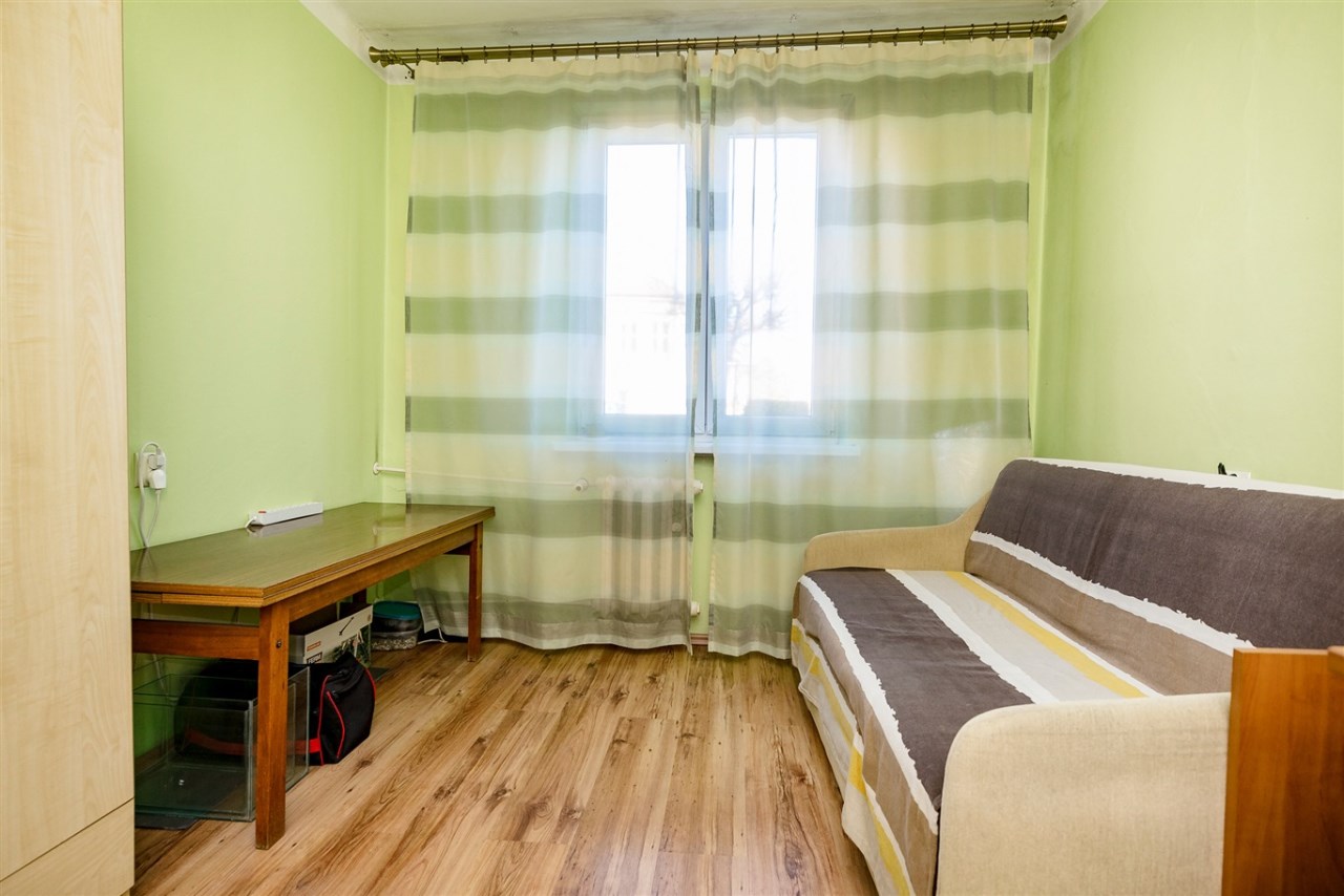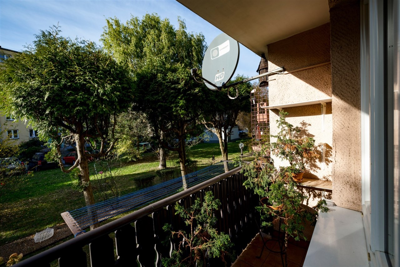 Przytulne mieszkanie o powierzchni 44,97 mkw położone jest na parterze w czteropiętrowym bloku na Osiedlu Generała Sikorskiego w Kętach.