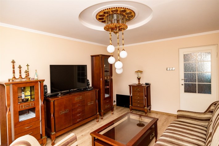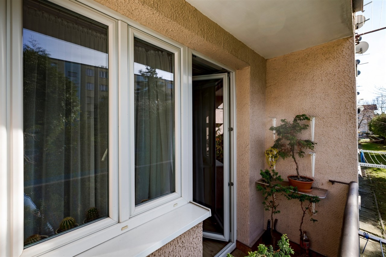 Mieszkanie składa się z salonu z balkonem (poszerzony), sypialni, kuchni, łazienki i przedpokoju.