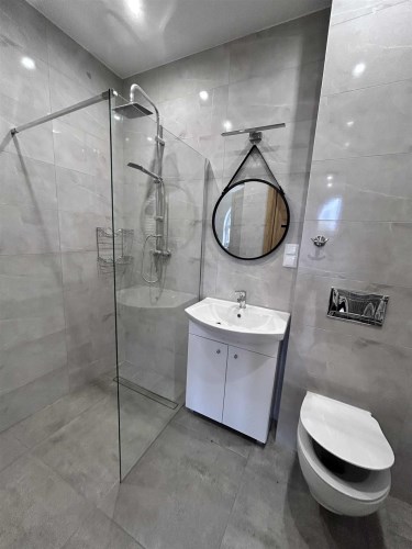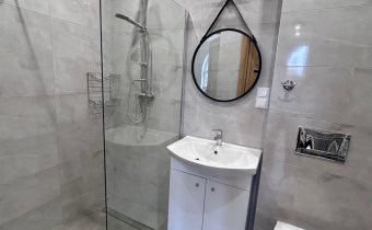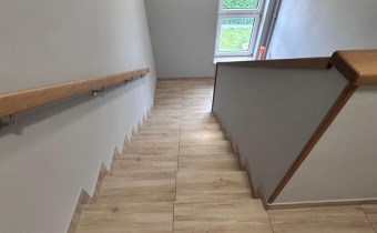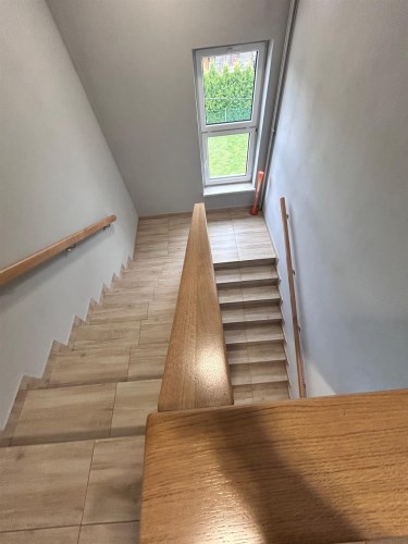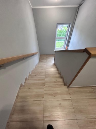 Wysoki standard wykończenia, na podłogach panele i płytki.