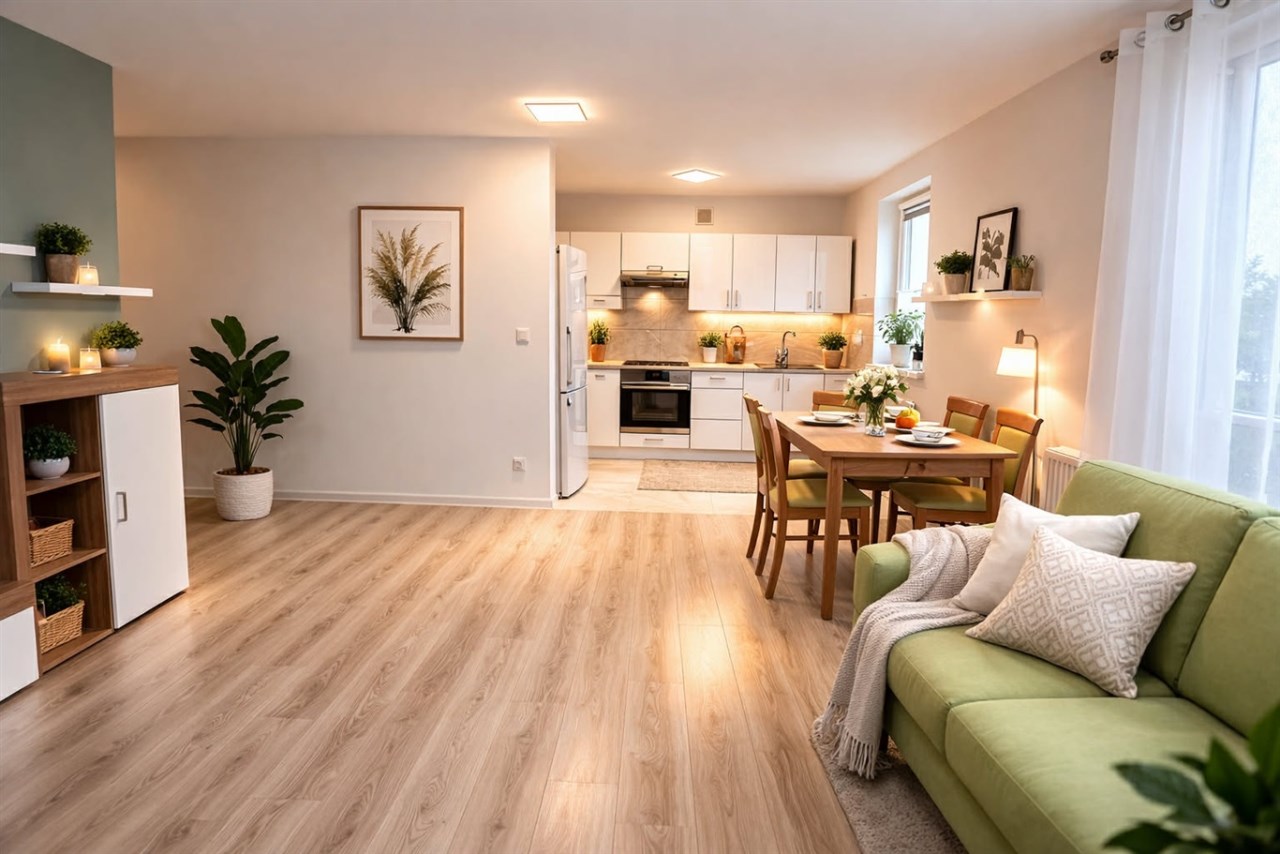 Najemca otrzymuje wyposażony apartament gotowy do zamieszkania od razu.